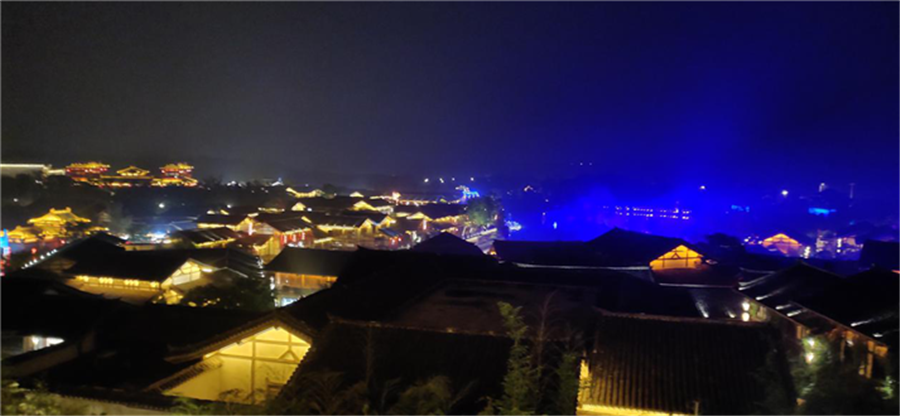 天階夜色涼如水,整個山鎮都暈染在昏黃浪漫紫的燈光里,美得動人心魄,穿越在這古風之中,流連忘返。