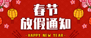 放假期間,我們的服務與生產將暫停。如有緊急事宜,請及時與我們溝通,我們將根據情況盡量提供支持。祝您在新的一年里事業興旺,家庭幸福,萬事如意!