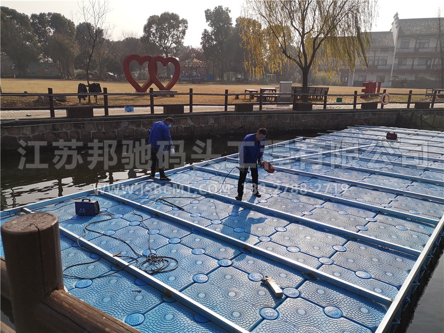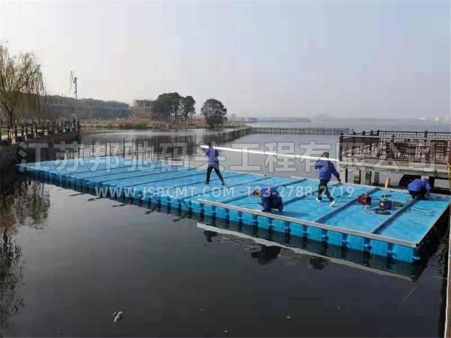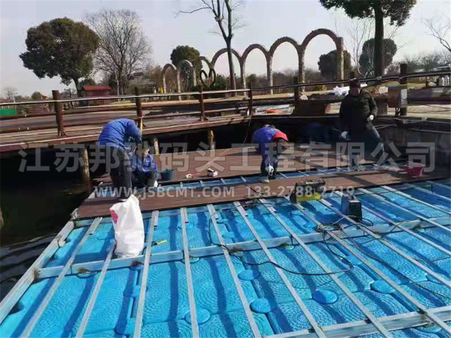 無錫蕩口鵝湖浮筒平臺面鋪塑木板